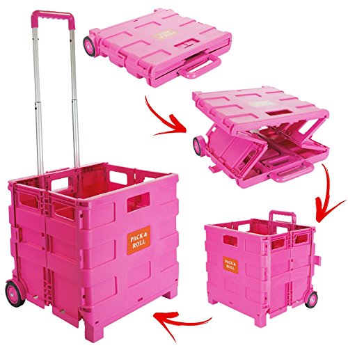 ASAB offer 25KG Large Multi Purpose Folding Boot Cart Shopping Trolley Telescopic Pull Handle Rolling Rubber Wheels Heavy Duty Storage Box Tidy Crate - Pink. This awesome product currently limited units, you can buy it now for £14.99, You save -