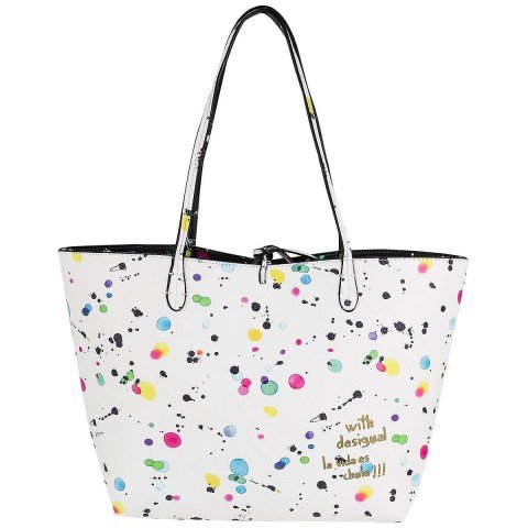 - Large shopper shaped bag with separate removable inner bag. Classy textured faux leather with subtle galactic circle embroidery, gold metalwork and zips and Desigual keyring. Choice of wine, chocolate or black.