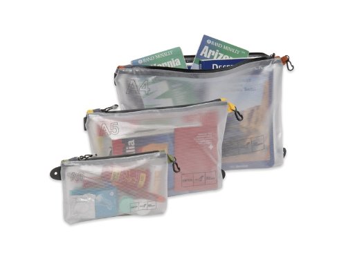Quick access zippered Vista Organisers are transparent and weatherproof. They come in 3 sizes from A6 to A4 and hold anything from valuables to documents, maps, books, pens or toiletry items. Hook and loop attachments. Not waterproof. Materials Durable and transparent TPU/Mesh laminate. Weatherproof YKK zipper.